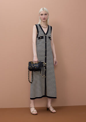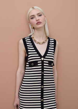 Vestido tricot com riscas bicolores e lurex by Maite