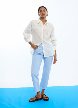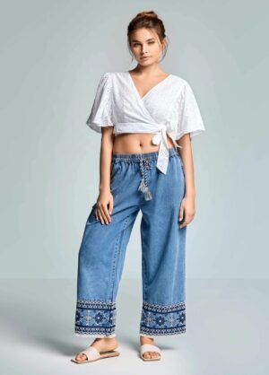 Calça denim com detalhe de leopardo