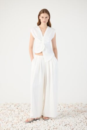 Top com drapeado escultural