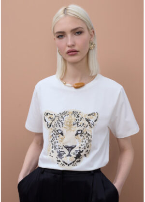 T-Shirt face de leopardo com miçangas