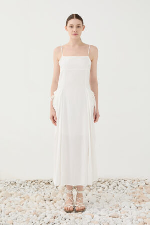 Vestido maxi em cupro com alças finas