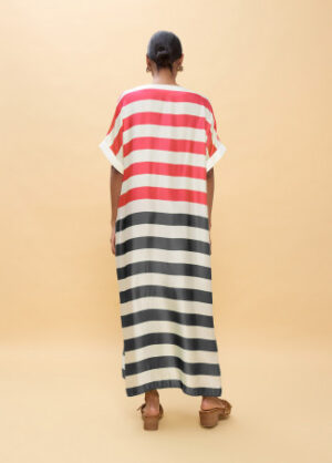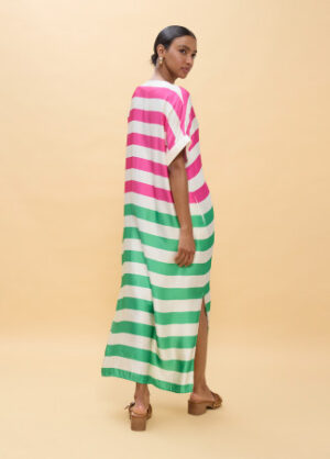 Vestido longo listas tricolor