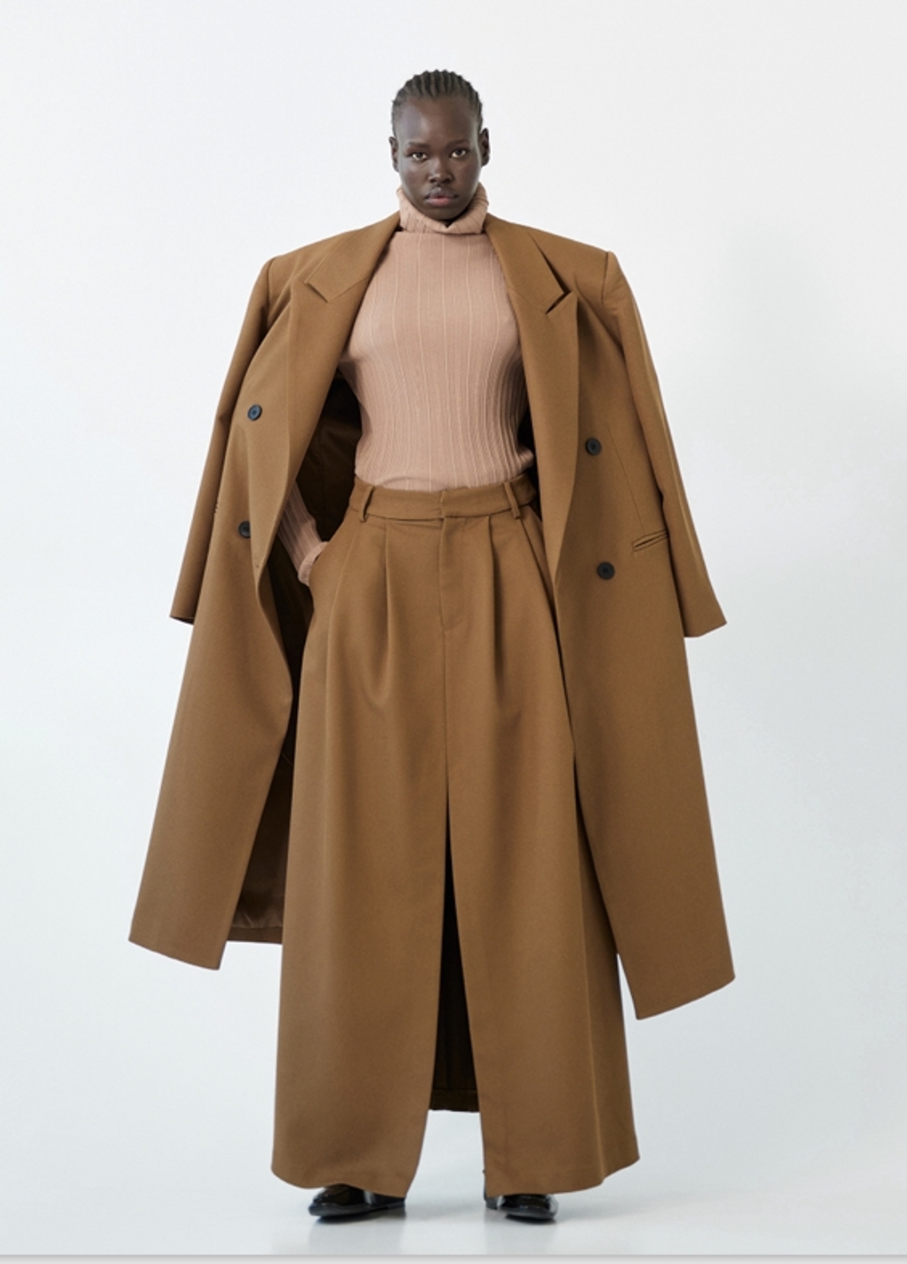 Estas calças de estilo “pantalonas” são a peça ideal para quem procura uma silhueta alongada e imponente, fundindo a estrutura da alfaiataria clássica com um volume moderno e fluido.
