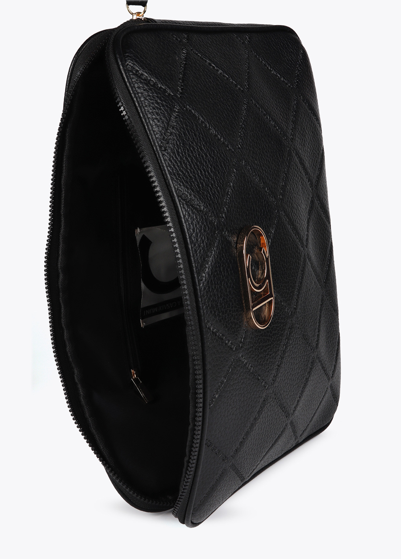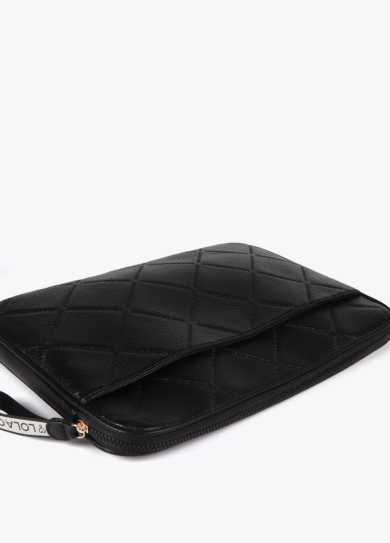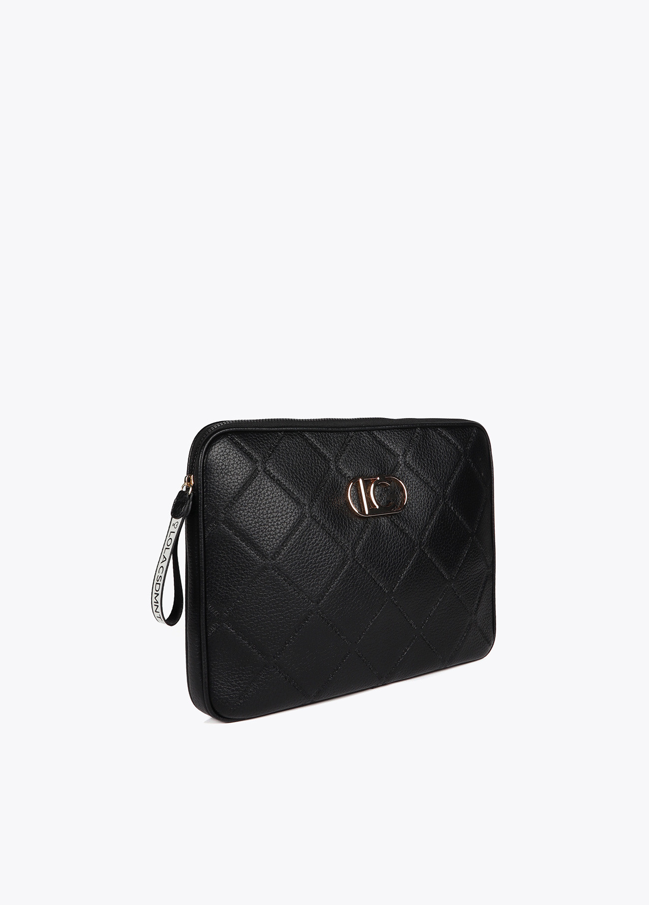 Capa para computador com design de losangos em relevo e monograma metálico. Feita de material resistente, fecho de zíper e interior acolchoado. Ideal para proteger o seu dispositivo com sofisticação.