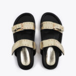 Cinto reversível elegante com fivela dourada de logo oval. Fabricado em material sintético de alta qualidade, oferece duas combinações de cores: preto e branco. Um acessório versátil e chique para qualquer look.