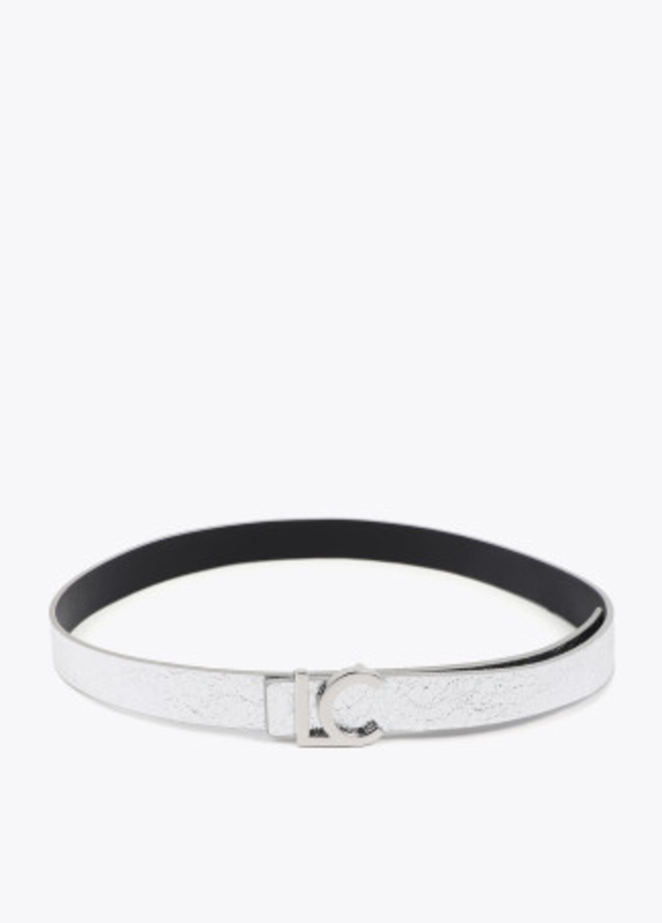 Cinto reversível com design metálico prateado e fivela LC distintiva. Versátil para combinar com vários estilos devido ao seu acabamento duplo. Perfeito para adicionar um toque moderno e sofisticado a qualquer visual. Disponível em tamanho ajustável para maior conforto.