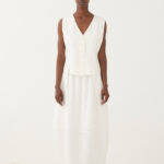 A harmonia perfeita entre volume e leveza. Este top da Eleh destaca-se pelo seu design arquitetónico e minimalista, apresentando uma silhueta em camadas que confere um movimento gracioso e moderno a qualquer visual. É a peça ideal para quem procura um estilo “quiet luxury” com um toque orgânico.