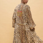 Vestido longo fluido com estampado de listras tricolor em tons vibrantes. Confeccionado em tecido leve, apresenta um design confortável com decote em V e mangas curtas. Aberturas laterais para movimento suave.
