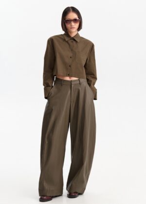 Camisa reta em popeline com detalhe de joia