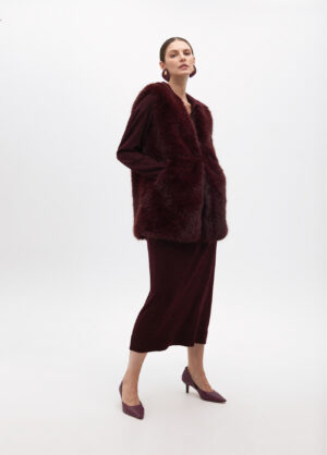 Colete de pêlo sintético com risca contrastes