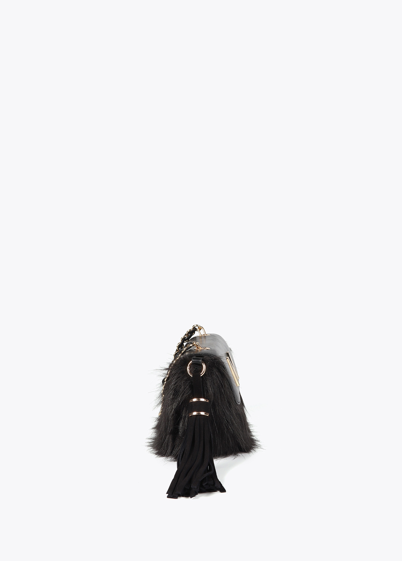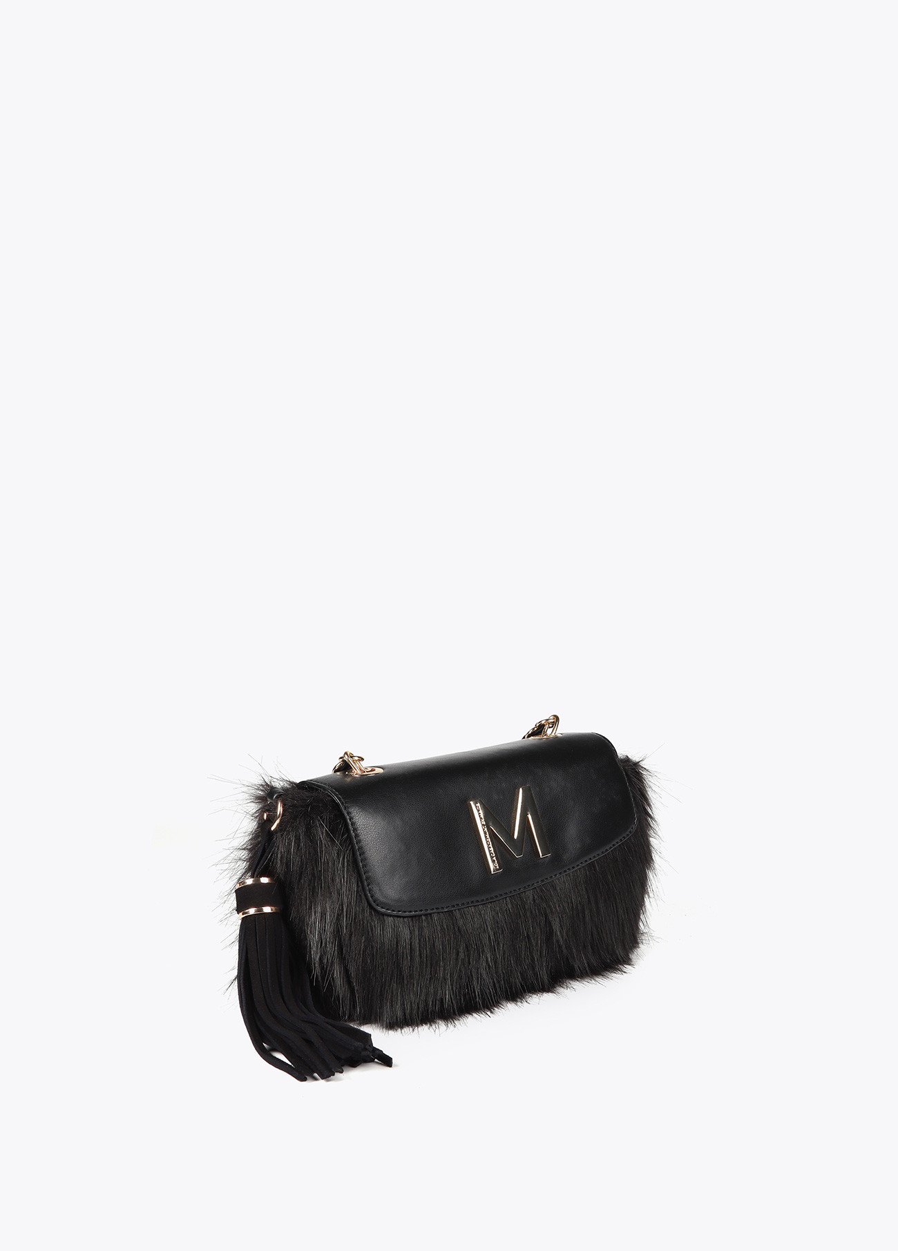 Bolsa elegante com flap de efeito couro e detalhes de pelo macio. Inclui alça de corrente dourada e compartimentos internos espaçosos. Fecho magnético seguro.
