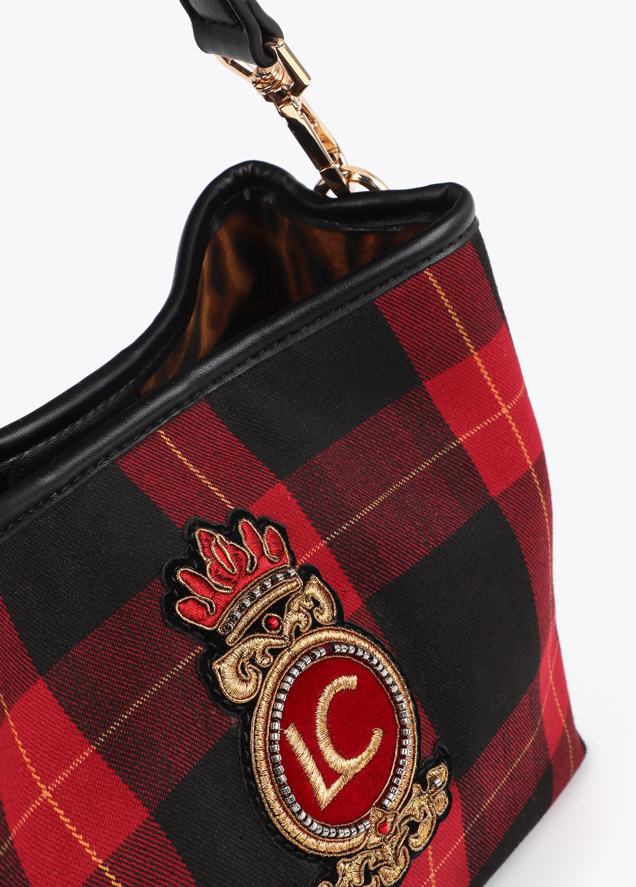 Bolsa de tecido xadrez com patch de escudo