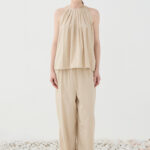Eleve o seu guarda-roupa de essenciais com estas calças de perna larga, desenhadas para criar uma linha vertical infinita e sofisticada. A sua composição técnica proporciona o equilíbrio perfeito: o aspeto nobre do crepe com a flexibilidade necessária para um movimento sem restrições. Com uma cintura subida estruturada e pinças subtis, esta peça em branco marfim oferece um caimento pesado e fluido que não amarrota, mantendo-a impecável de manhã à noite