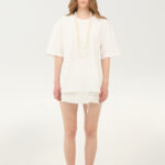 Combine esta calças com o Top com drapeado escultural Eleh. Este visual foca-se no minimalismo puro, perfeito para um almoço de verão ou um evento informal de trabalho.