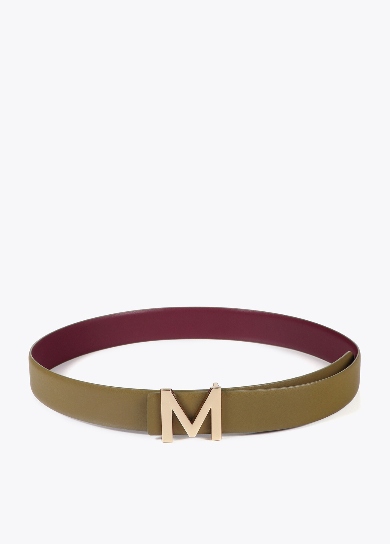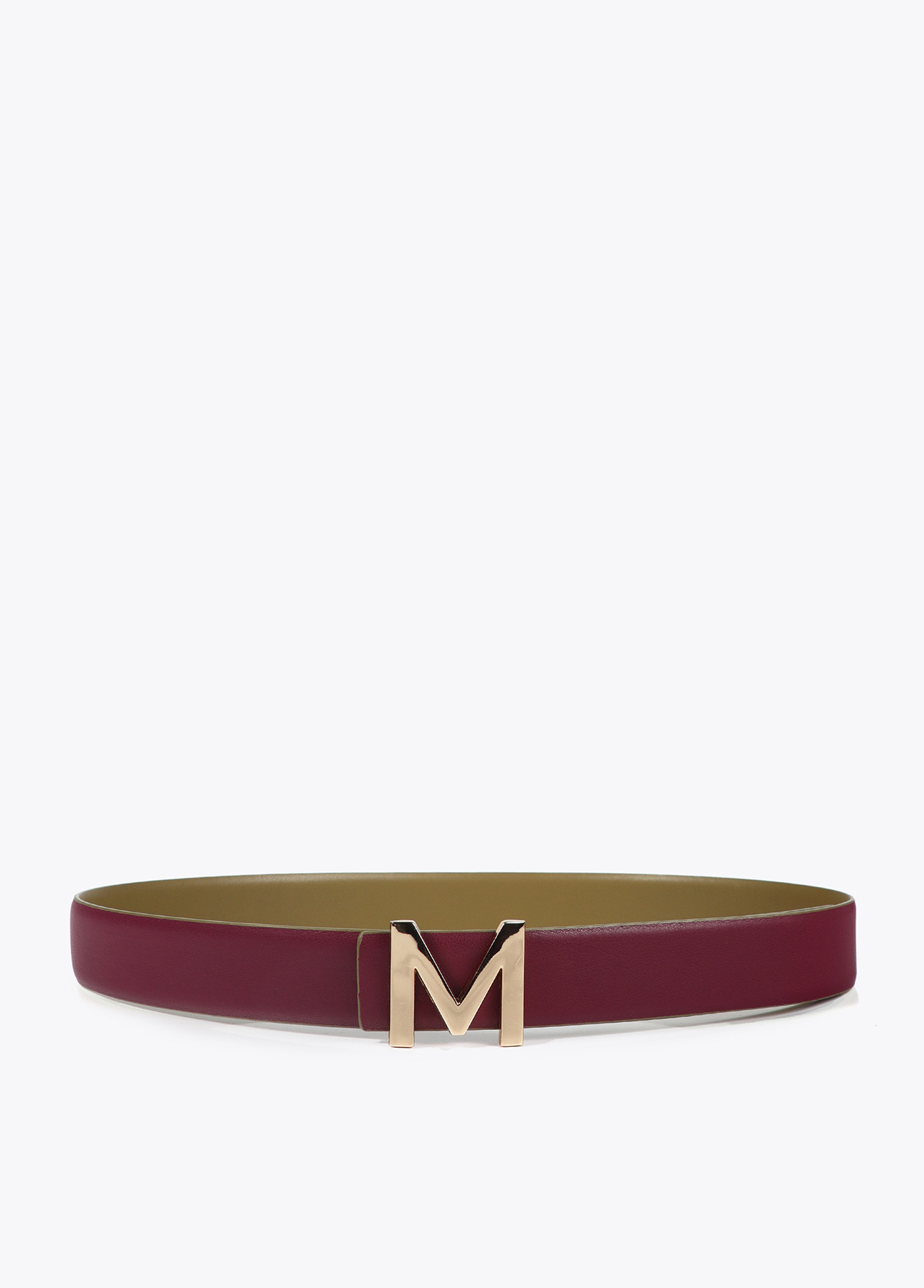 Cinto reversível de couro com elegante fivela ‘M’. Design versátil com duas cores em um só acessório. Perfeito para combinar com vários estilos e looks. Largura padrão para qualquer calça ou vestido.