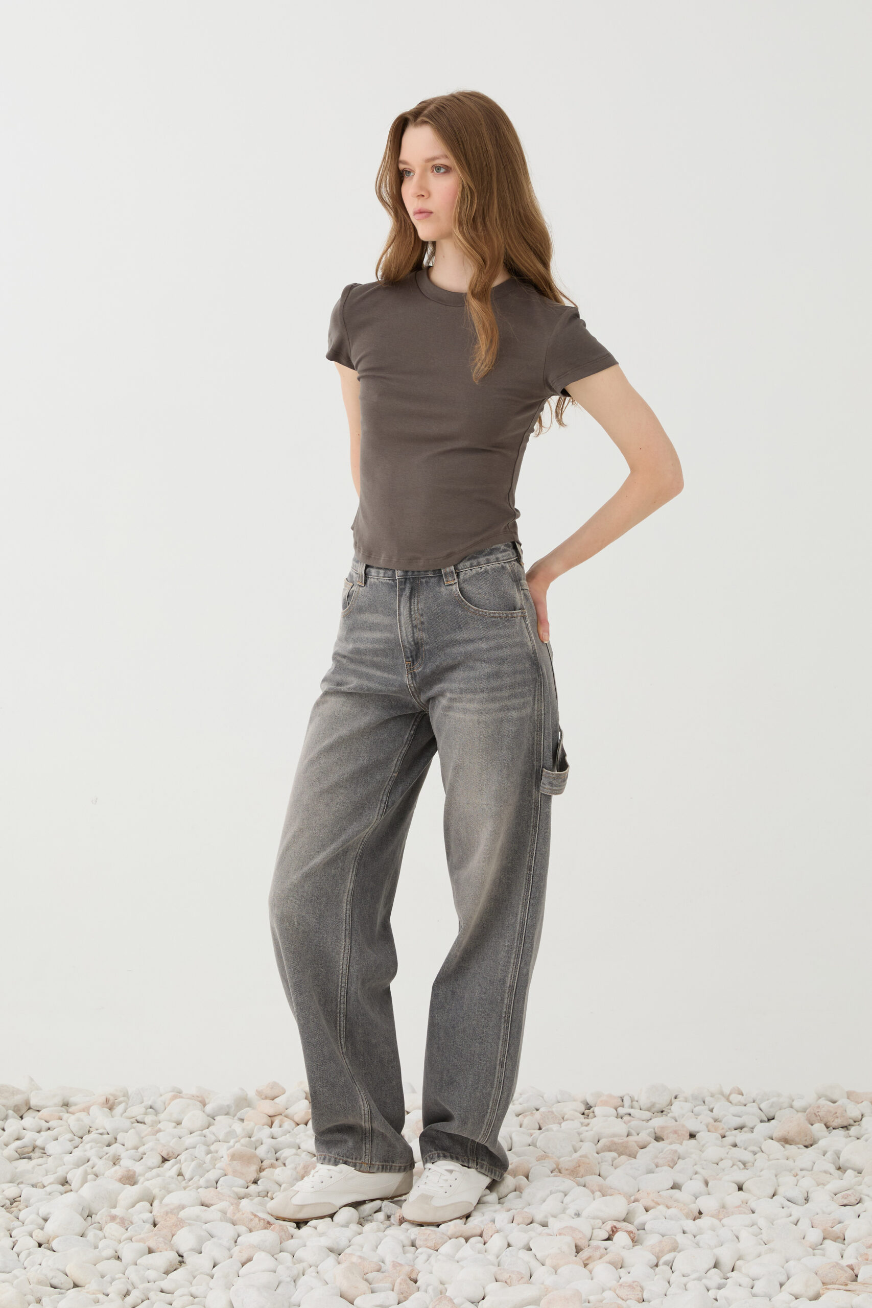 Com uma modelagem wide leg que proporciona um caimento fluido e moderno, esta peça destaca-se pelos detalhes inspirados no estilo carpenter, unindo a estética urbana à funcionalidade.